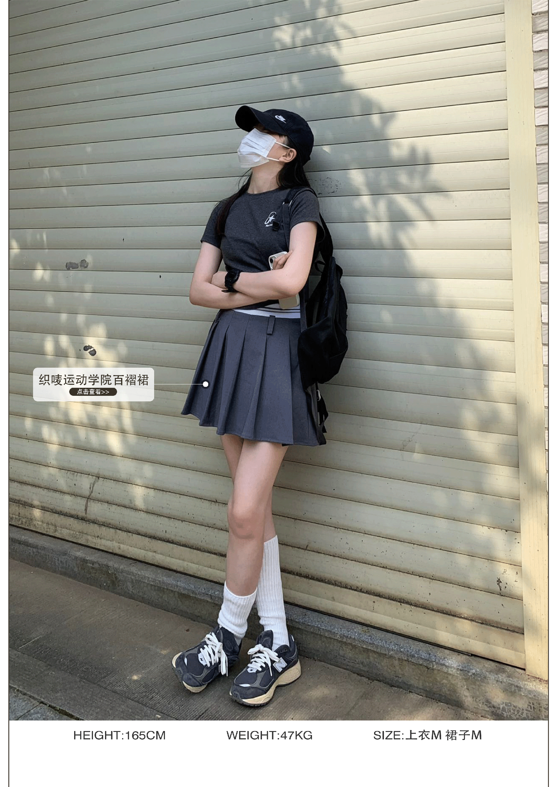 陷入我们的热恋徐栀刘浩存同款Turn Signal休闲运动套装长袖T恤+半身裙裤两件套